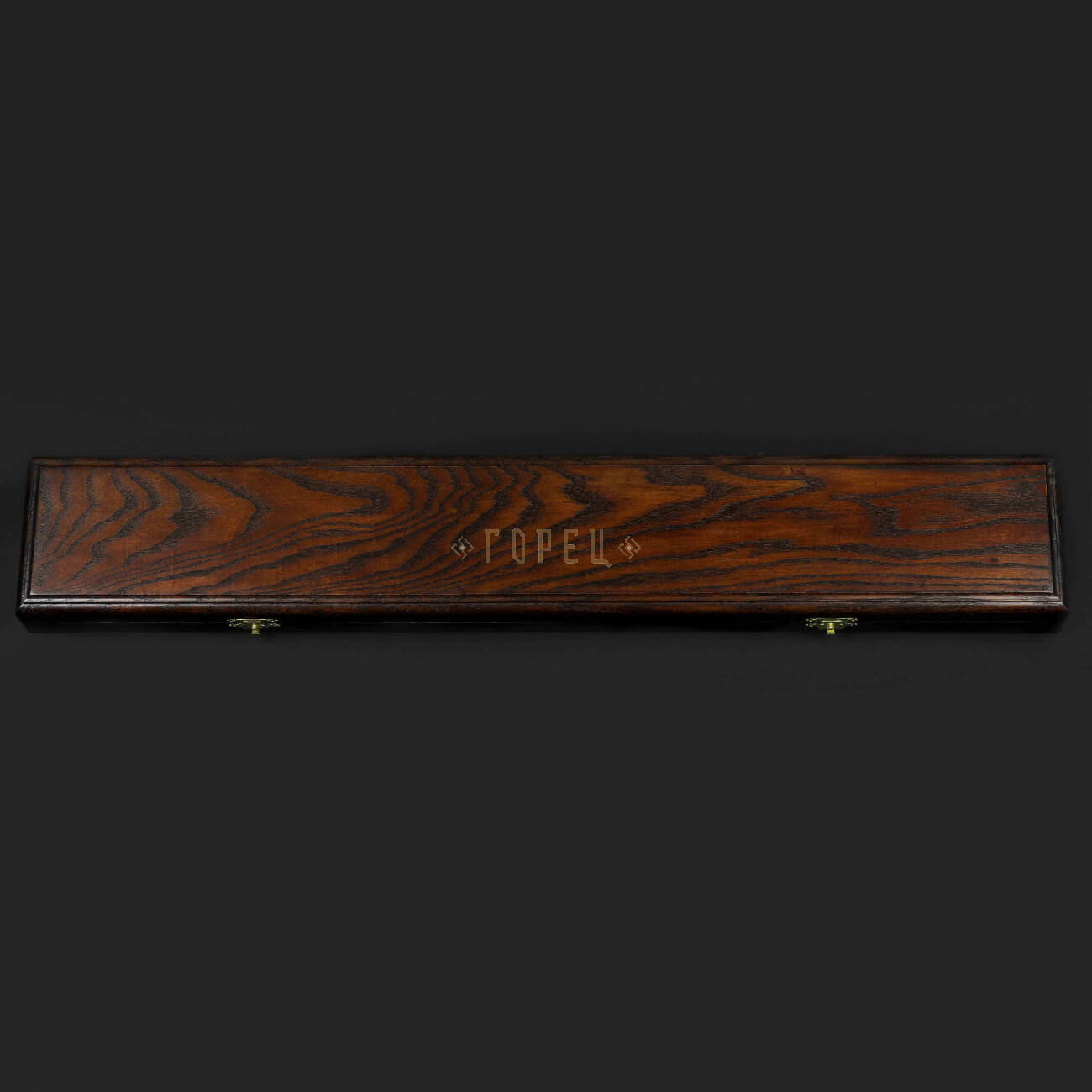 Уникальный кавказский кинжал "Кавказ" ручной работы, изготовленный в знаменитом дагестанском ауле Кубачи, известном своими златокузнецами. В комплекте идет подкинжальный нож, выполненный в том же стиле. Клинок кинжала, выкованный из дамасской стали с 400-1500 слоями, обладает высокой твердостью (58-60 HRC) и превосходной заточкой. Рукоять надежно закреплена на эпоксидной смоле. Ножны изготовлены из березы и искусно украшены серебром и слоновой костью. Подкинжальный нож также имеет дамасский клинок и рукоять из черного дерева. Кубачи славится своими мастерами, чьи работы, по преданиям, украшали даже Александра Македонского и Александра Невского. В комплекте идет шкатулка для хранения. Изделие не является холодным оружием и свободно к приобретению и ношению, так как относится к народным промыслам.